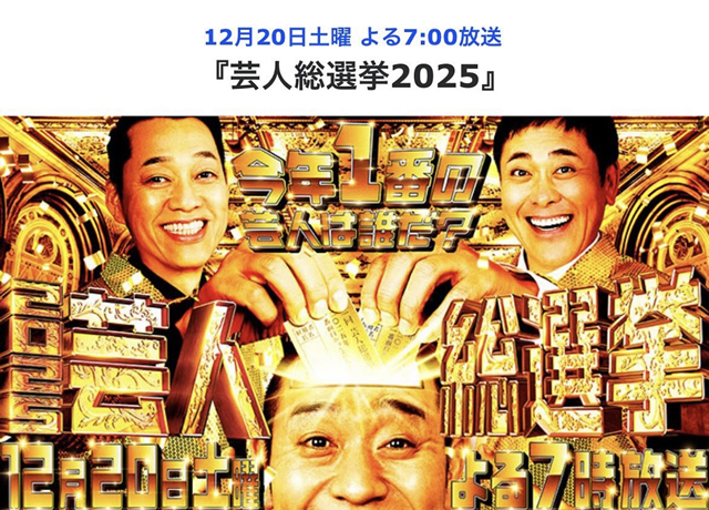 オーナーYUKIが2025年12月20日(土)19時放送『芸人総選挙2025』に施設オーナーセラピスト役として、パンサー尾形様、高野様、ロングコートダディ兎様にドッキリ仕掛け人として出演させて頂きました。